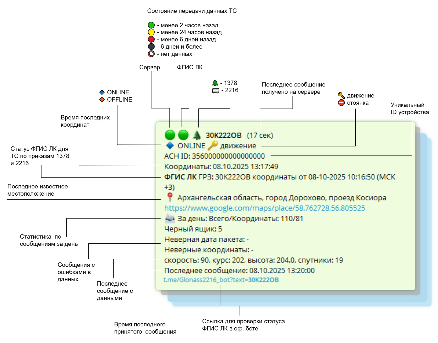 Вы получите актуальную информацию по вашему транспорту: где он находится прямо сейчас, его статус и скорость.